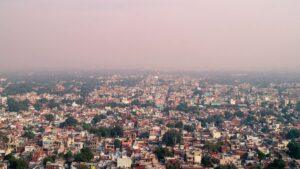 Nature meets city – Dehradun’s skyline blurred under the smoky monsoon blanket.