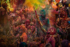 Varanasi celebrates Holi with vibrant colors, music, dance, and devotion.