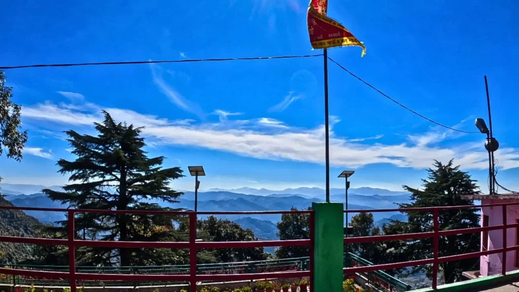 The architecture of the temple is crafted in the traditional Pahari (mountain) style. Within the Garbha-griha (sanctum sanctorum), devotees can seek darshan (sacred sight) of the Goddess’s idol. This sacred viewing bestows a profound sense of inner peace upon the mind. From the temple, the snow-capped peaks of the Himalayas are clearly visible; from this vantage point, you can behold the majestic sights of Nanda Devi and Panchachuli.