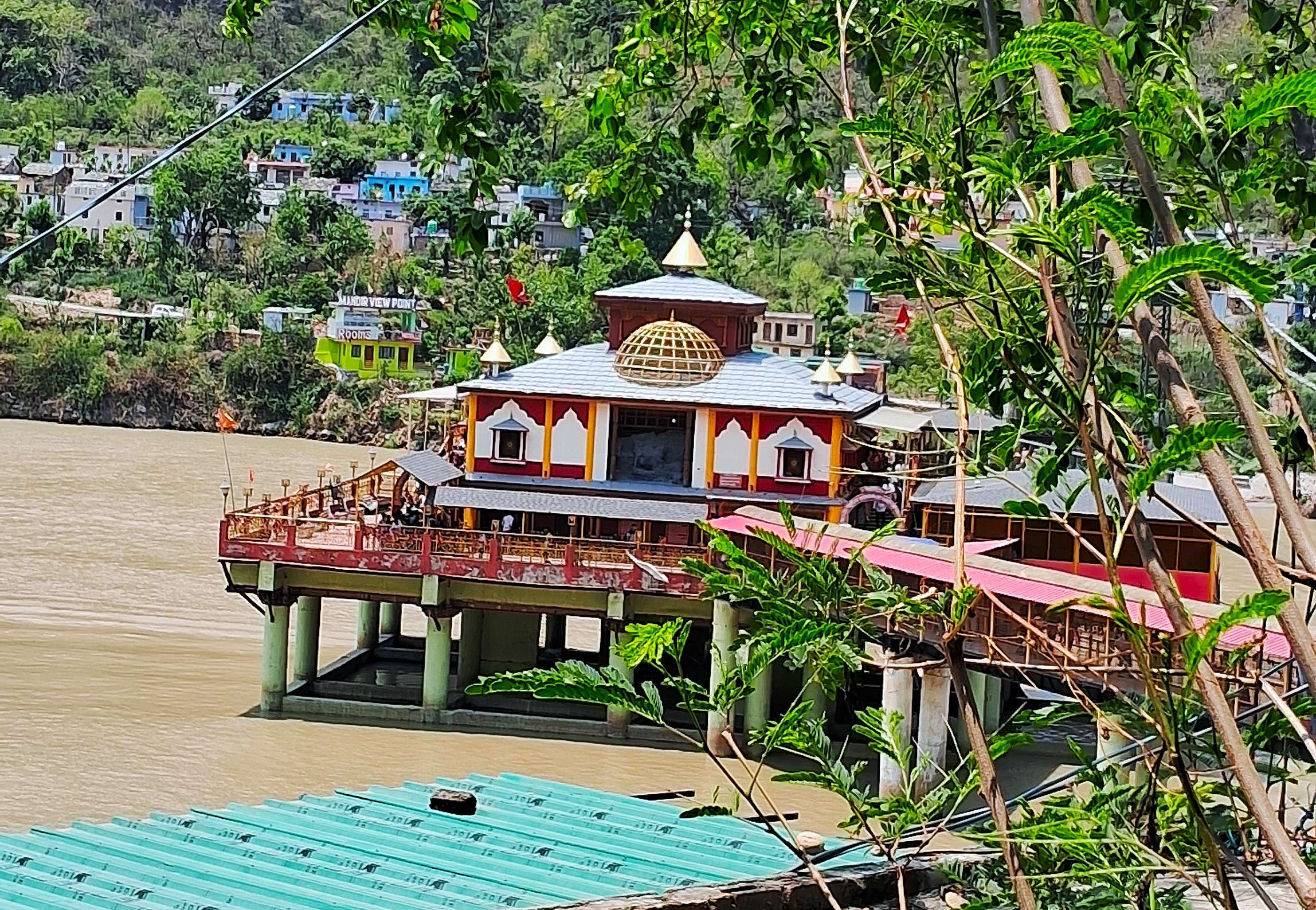 Discover the sacred temple standing above the Alaknanda River.